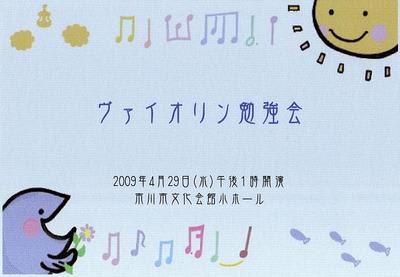 勉強会前の最後のレッスンを終えて、まず一番嬉しいのは、一時は「ヴァイオリンを止めたい、、」とまで言っていたYちゃんが、生き生きと弾くようになり、「夏期学校では○○のクラスに入る」と張り切っていることと、今まで頼まれ仕事で弾いていた?(お母さん、ごめんなさいね)K君の意識が、少しではあるけれど上向いてきた、、ことでしょうか、、